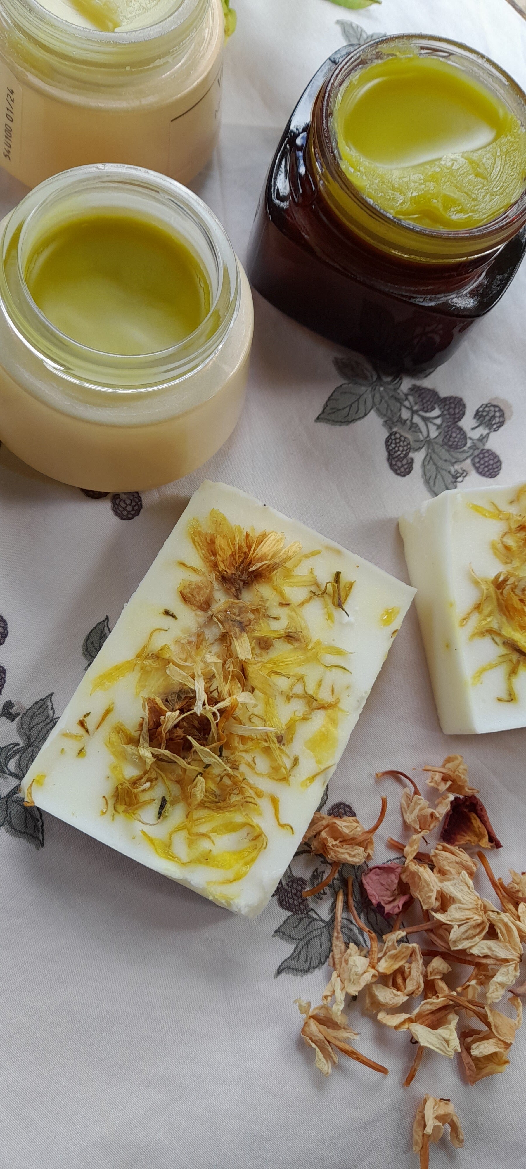 Sabão artesanal botânico elaborado com azeites macerados de plantas espontâneas ou plantadas.